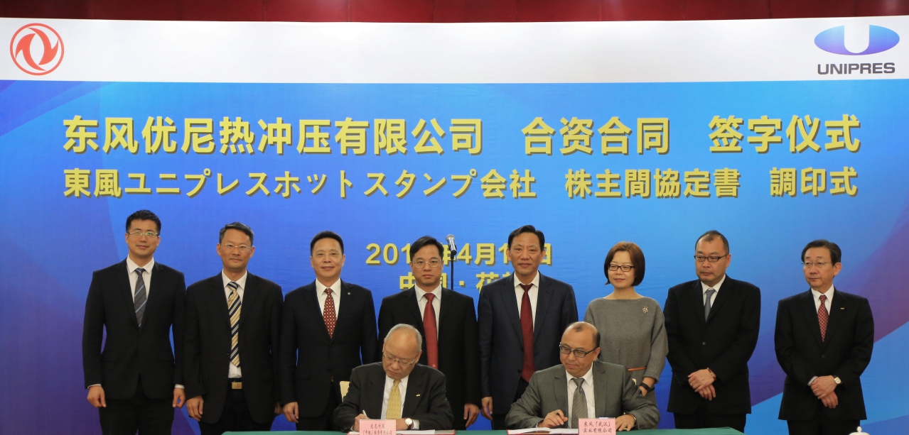 4月12日,東風(fēng)優(yōu)尼熱沖壓有限公司合資合同簽約儀式在廣州花都區(qū)人民政府辦公大樓舉行。東風(fēng)優(yōu)尼熱沖壓有限公司由東風(fēng)(武漢)實(shí)業(yè)有限公司與優(yōu)尼沖壓(中國(guó))投資有限公司合資建立,注冊(cè)資金為1億元人民幣,雙方股比為50:50,主要為汽車主機(jī)廠專業(yè)開(kāi)發(fā)、設(shè)計(jì)和生產(chǎn)、銷售熱沖壓零部件。該合資公司建成初期將為東風(fēng)日產(chǎn)新軒逸供應(yīng)熱沖壓零部件。 東風(fēng)公司總經(jīng)理助理羅元紅,花都區(qū)區(qū)長(zhǎng)葉志良,東風(fēng)汽車有限公司副總裁、黨委常委周先鵬,日本優(yōu)尼沖壓株式會(huì)社社長(zhǎng)吉澤正信等出席簽約儀式。
