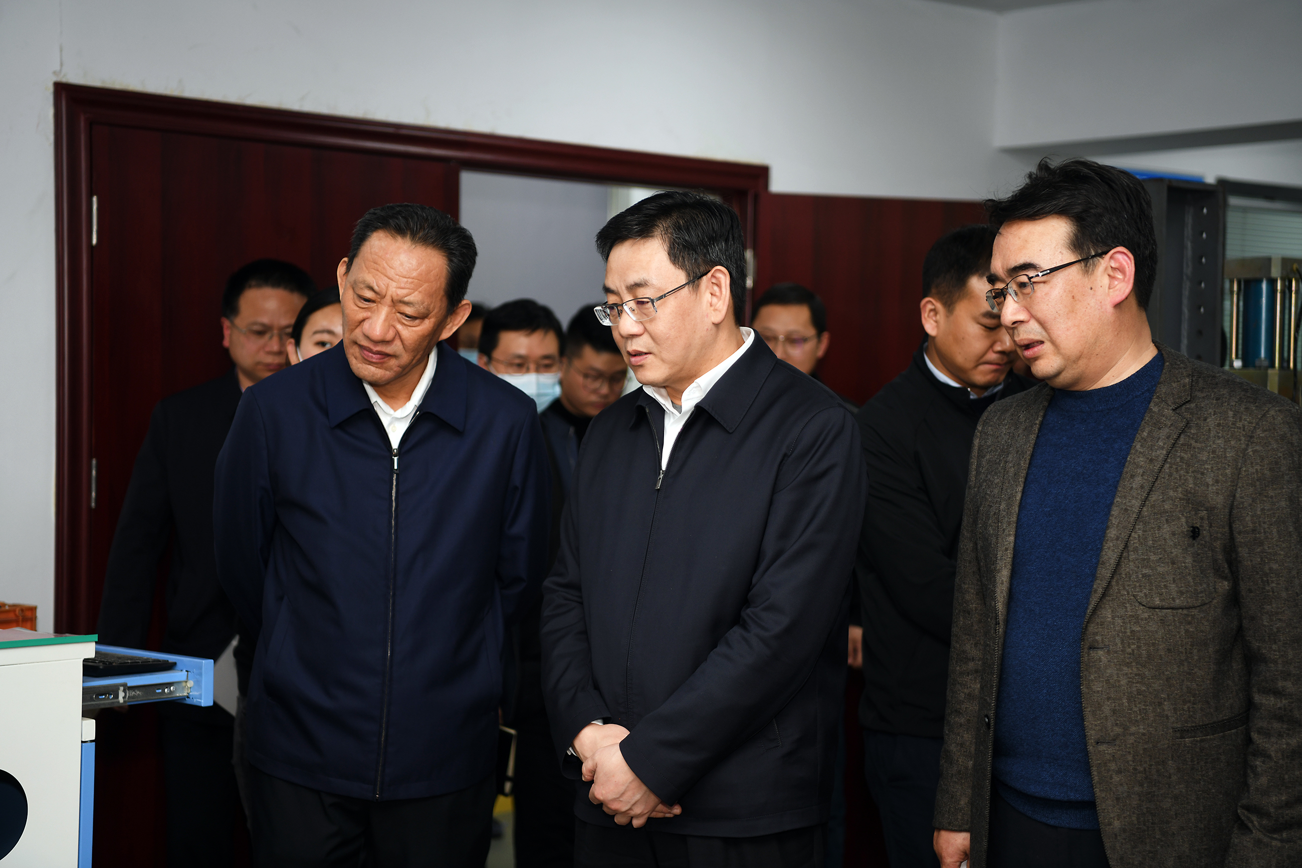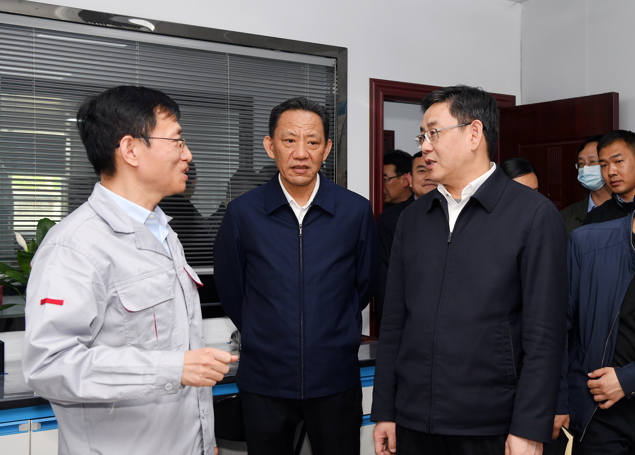 在實驗室,在聽取了該公司關于實驗裝備實力、人員情況和下一步規(guī)劃的介紹后,胡亞波勉勵東森公司要進一步強化科技實力建設,早日建成國家級實驗室。