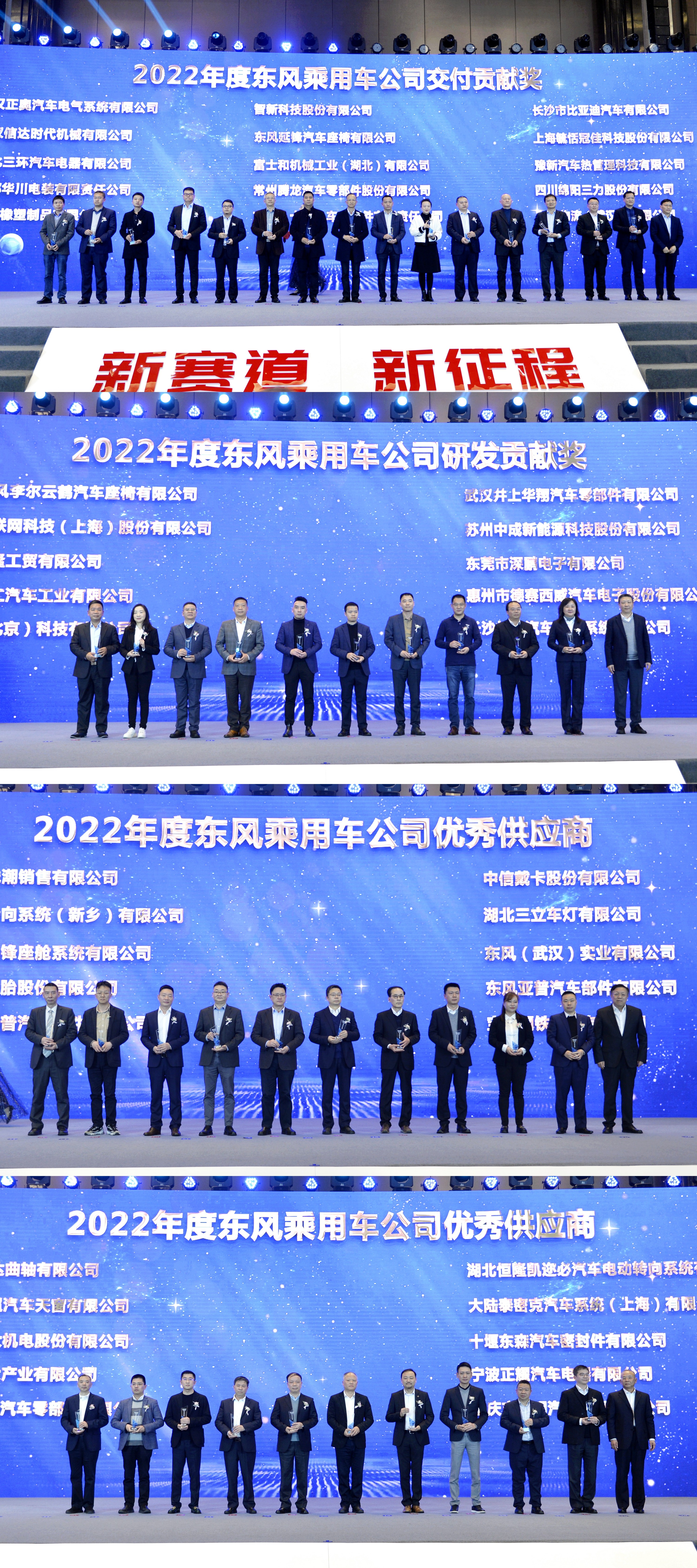 會上,東實車身部件(湖北)有限公司榮獲“2022年度交付貢獻(xiàn)獎”,東風(fēng)李爾汽車座椅有限公司榮獲“2022年度研發(fā)貢獻(xiàn)獎”,十堰東森汽車密封件有限公司、湖北三立車燈有限公司、東實(武漢)實業(yè)有限公司榮獲“2022年度優(yōu)秀供應(yīng)商”。