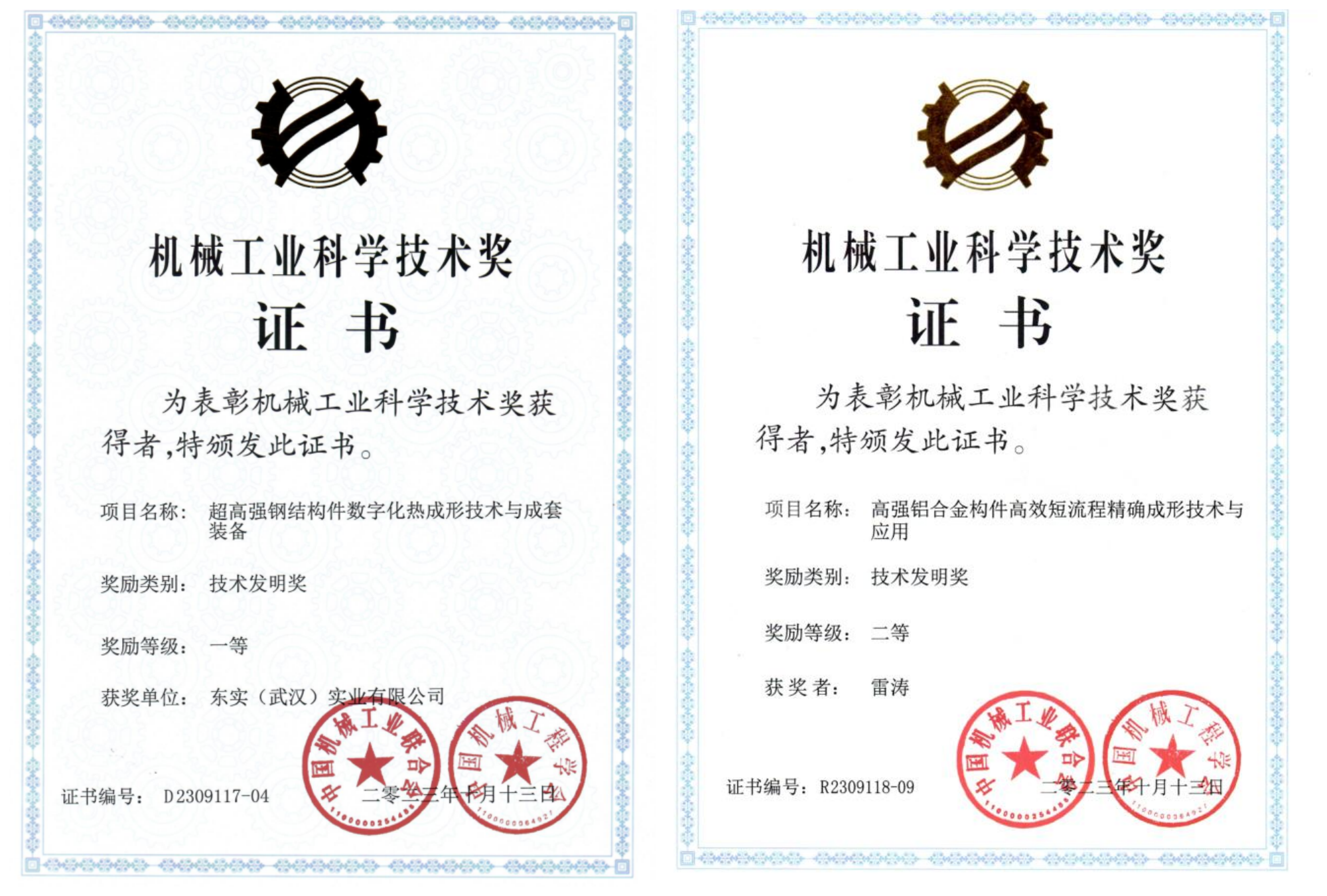 2023年度“機(jī)械工業(yè)科學(xué)技術(shù)獎”獲獎名單正式公布。其中,東實(shí)(武漢)實(shí)業(yè)有限公司的《超高強(qiáng)鋼結(jié)構(gòu)件數(shù)字化熱成形技術(shù)與成套裝備》獲技術(shù)發(fā)明一等獎、《高強(qiáng)鋁合金構(gòu)件高效短流程精確成形技術(shù)與應(yīng)用》獲技術(shù)發(fā)明二等獎。