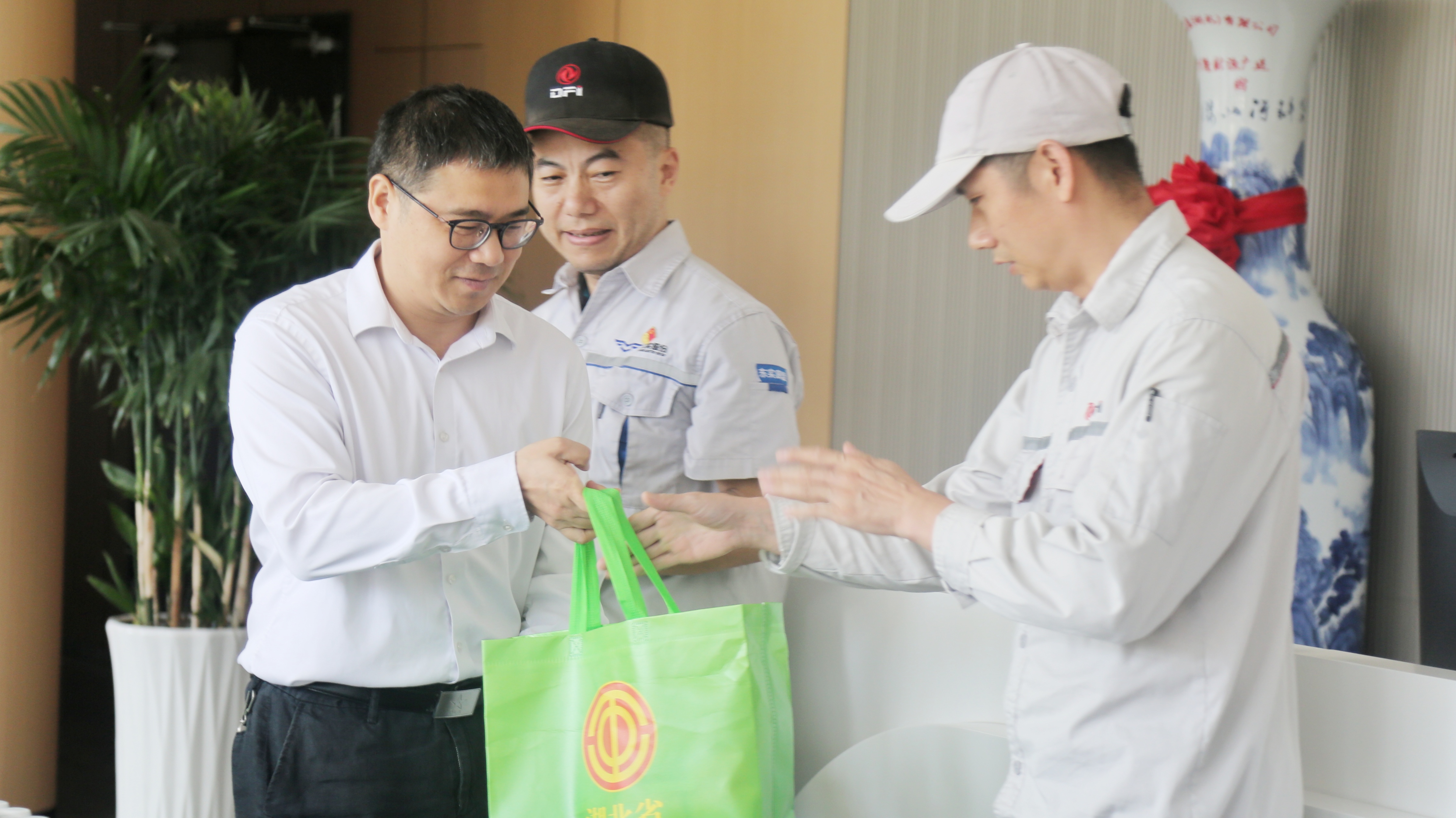 在東實底盤(湖北)有限公司制造現(xiàn)場,高紅民察看經(jīng)營發(fā)展、安全生產(chǎn)等方面情況,與一線員工親切握手,詢問大家的工作強(qiáng)度和防暑措施,并為員工們送上礦泉水、清涼包和水果等防暑降溫物資,叮囑大家在高溫天氣下務(wù)必做好防暑降溫工作,保重身體。